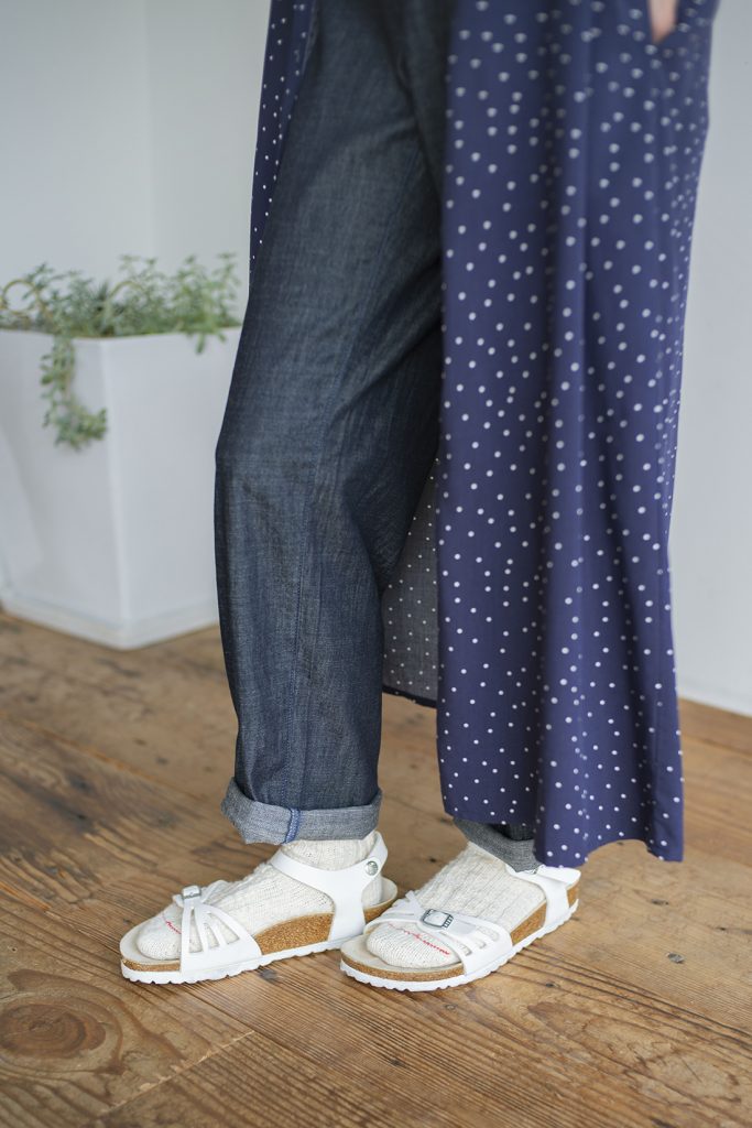 定番のデニムパンツとのレイヤードスタイルにも相性◎