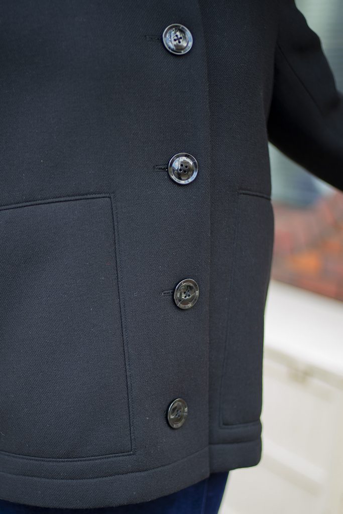 大きめのボタンが配置された前身頃は、ポップな印象に。