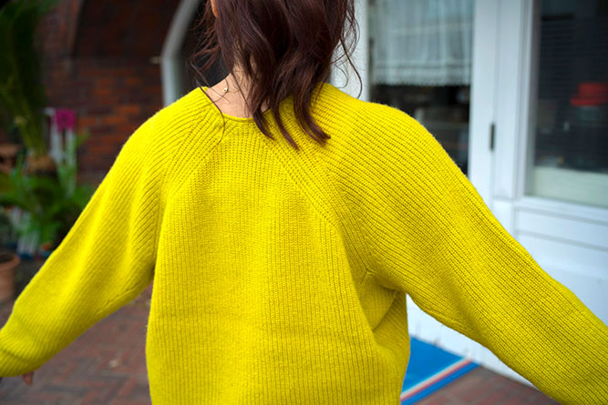 ラムウールの片畦編みニットは、オススメのネオンカラーの