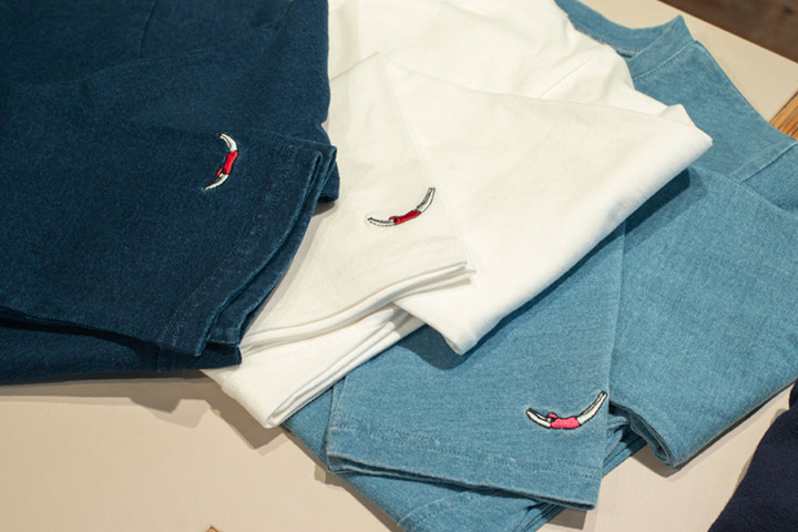 ダイビングガールの刺繍をあしらった後染めカットーソー。