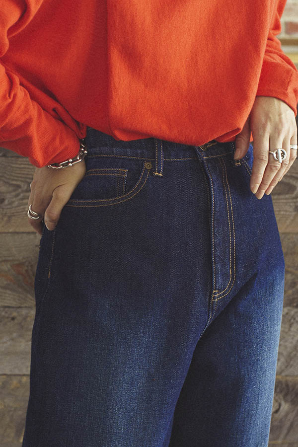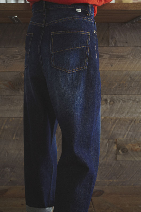 ゆったりめのテーパードシルエットのデニムパンツは、