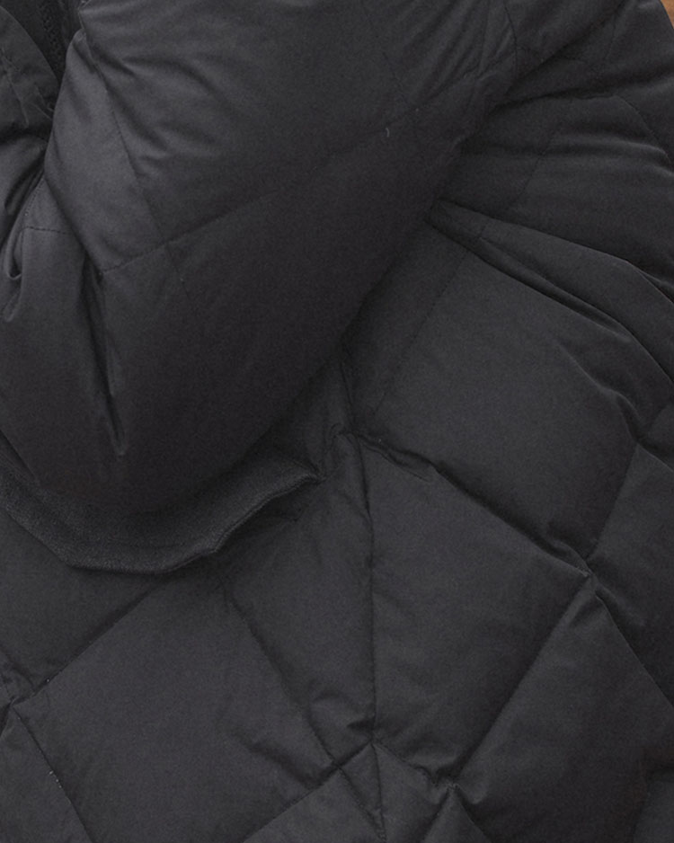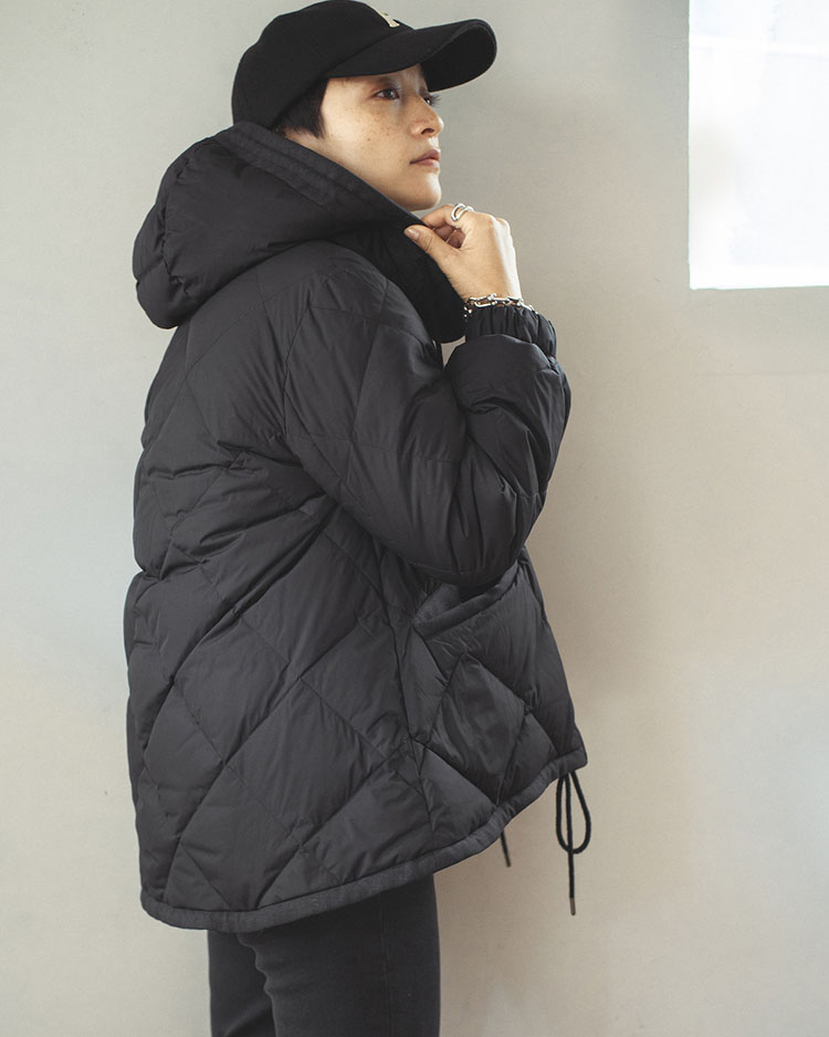 ダウン本体のステッチは、着回ししやすいダイヤ柄を採用。