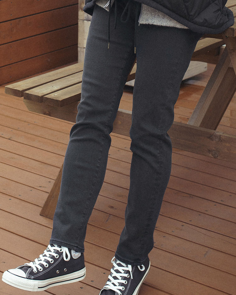 ストレッチの効いたブラックジーンズで