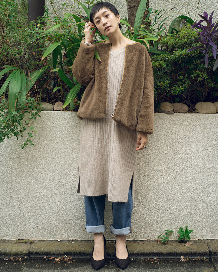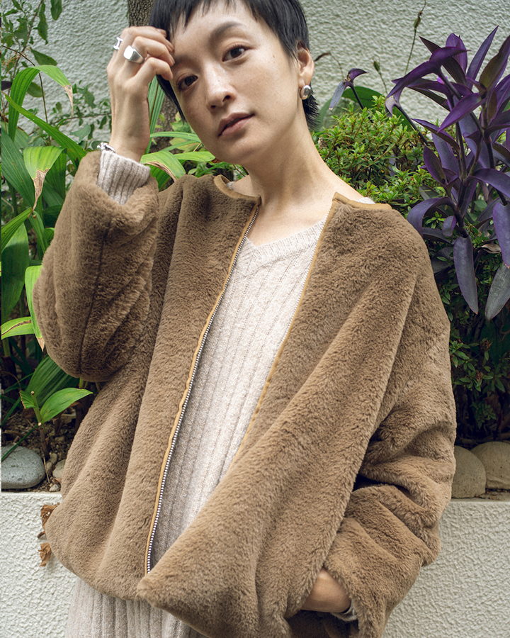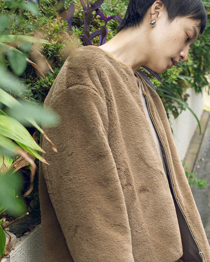 ボリュームを抑える為、コンパクトな毛先のファーを
