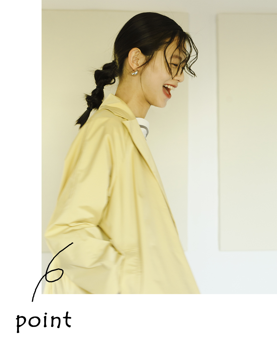 定番アウターの「トレンチコート」 今年はカラーチェンジしてみませんか? カスタードクリームのような淡いイエローは 柔らかな雰囲気を演出してくれます。 さっと羽織るだけでもサマになり、 デイリーに活躍するアウターです♩