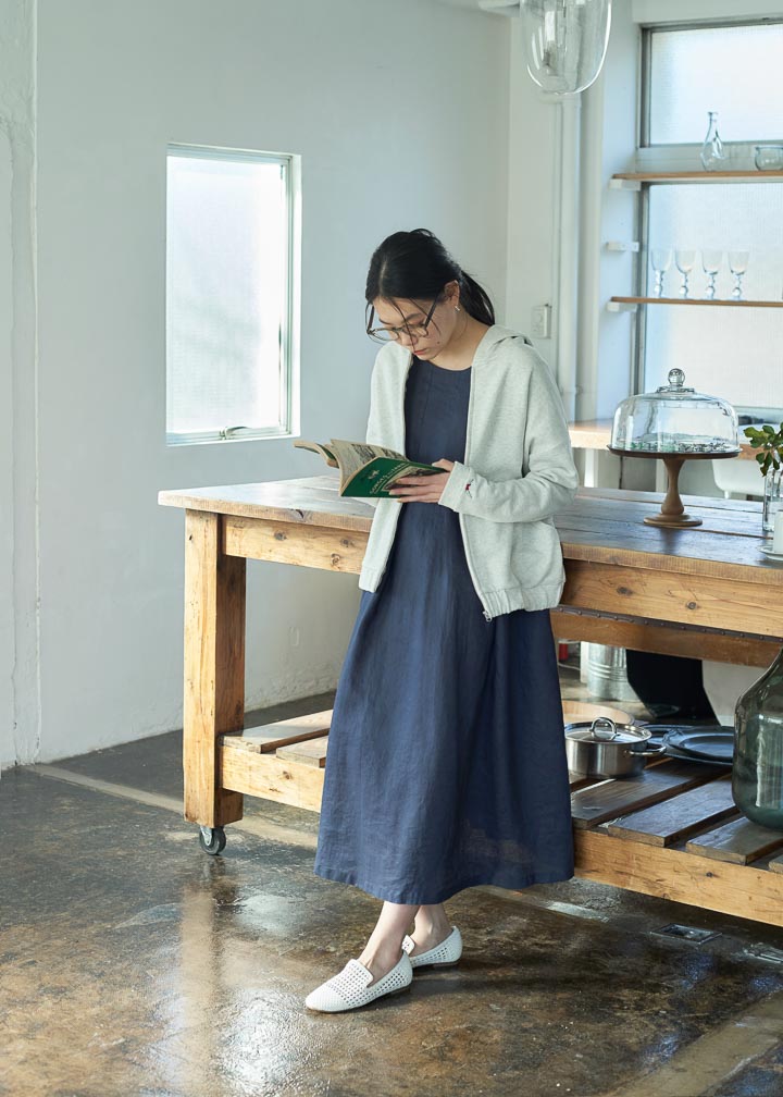 フルジップパーカ¥8,800、リネンワンピース¥12,100/ジャンセン その他 スタイリスト私物 *記載の価格は税込