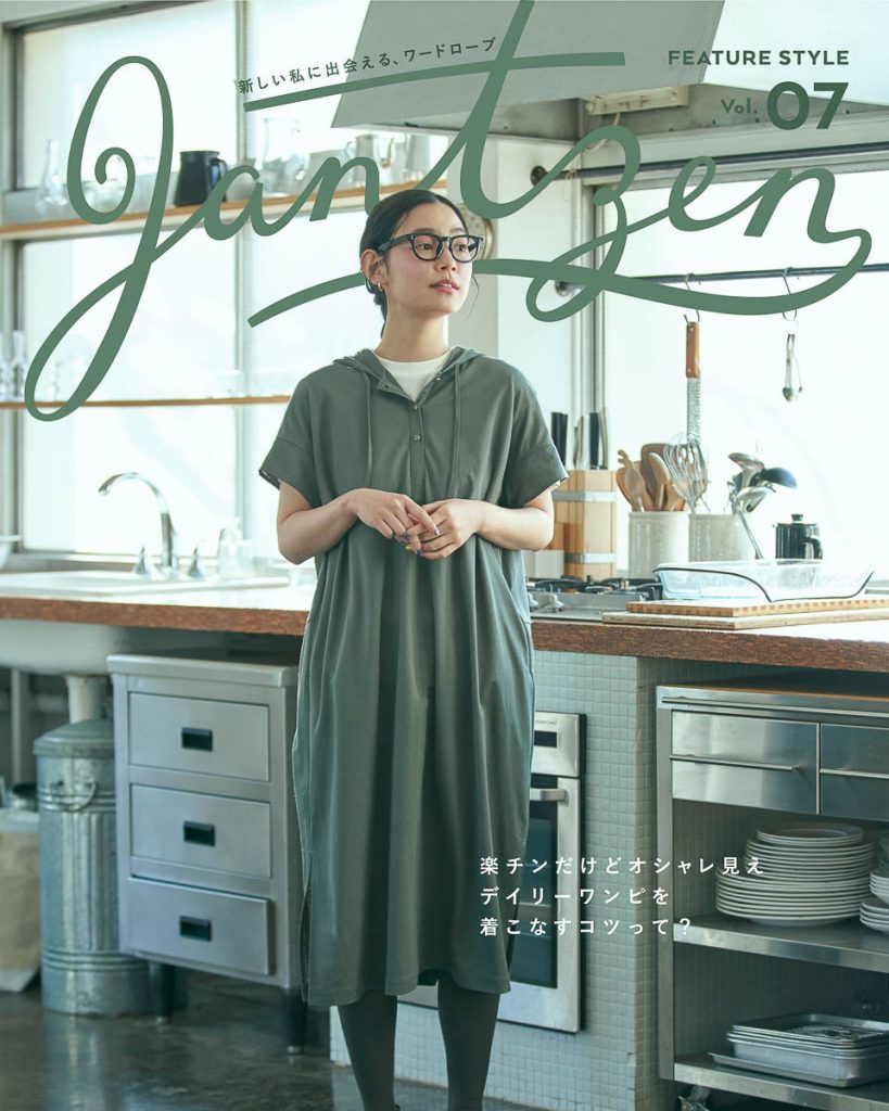 今回は、初夏から初秋にかけてのワードローブに欠かせない、楽チンカジュアルなワンピースの着こなしをご提案。ジャンセンの今一押しのアイテム「マイクロカノコ フードワンピース」を主役に用いた、こなれ感レイヤードスタイルです。