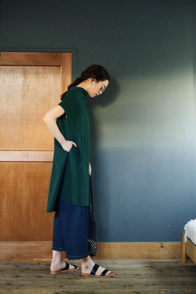 今回は、夏の日帰り旅行にもおすすめの、チュニック×ガウチョパンツの着こなしをご提案。ジャンセンの今一押しのアイテム「オフタートルチュニック」を主役に用いた、楽チンだけど、ちょっぴりモードなレイヤードスタイルです。