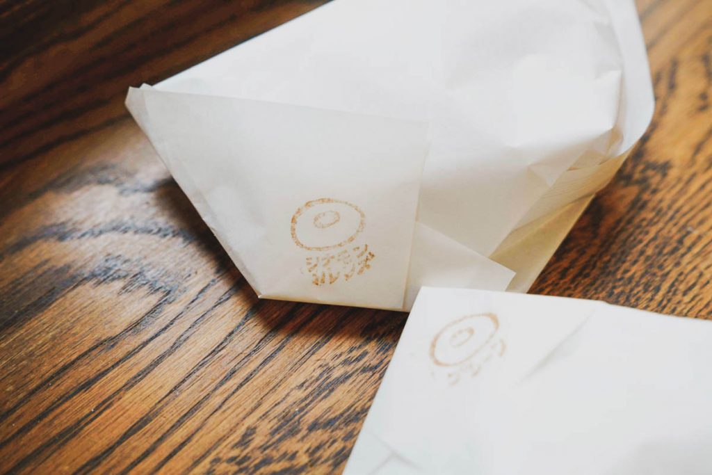 ドーナツの包みにはフレーバー名が捺印されている。複数種買った時も包みを開けなくても中身がわかる心配りが素敵。