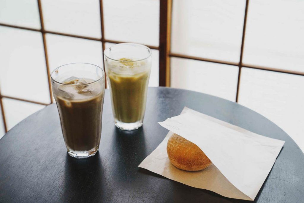 今回は、おすすめの品々の中から3種のドーナツ(もちろんすべてヴィーガン仕様)をピックアップ。上の写真手前から反時計回りに、瀬戸内レモンの果汁を使ったグレーズドにレモンピールがトッピングされたさわやかな味わいの「全粒粉ドーナツ レモングレーズド」(¥380)。小麦の香ばしい香りが口いっぱいに広がる「全粒粉ドーナツ 小麦ブラン」(¥340)。なお、前述の2品は共にふんわりとろける食感の“イーストドーナツ”という種類のもの。チョコレートと砕いたピスタチオ、柑橘チップスでデコレーションされたケーキのような佇まいの「グルテンフリーベイクドドーナツ チョコレート」(¥350)は、生地に白餡が練り込まれたしっとり食感の“ベイクドドーナツ(焼きドーナツ)”。作りたてのヴィーガンドーナツをリロード内のベンチで楽しむなら、お店自慢のソイラテと一緒に味わうのがおすすめ。