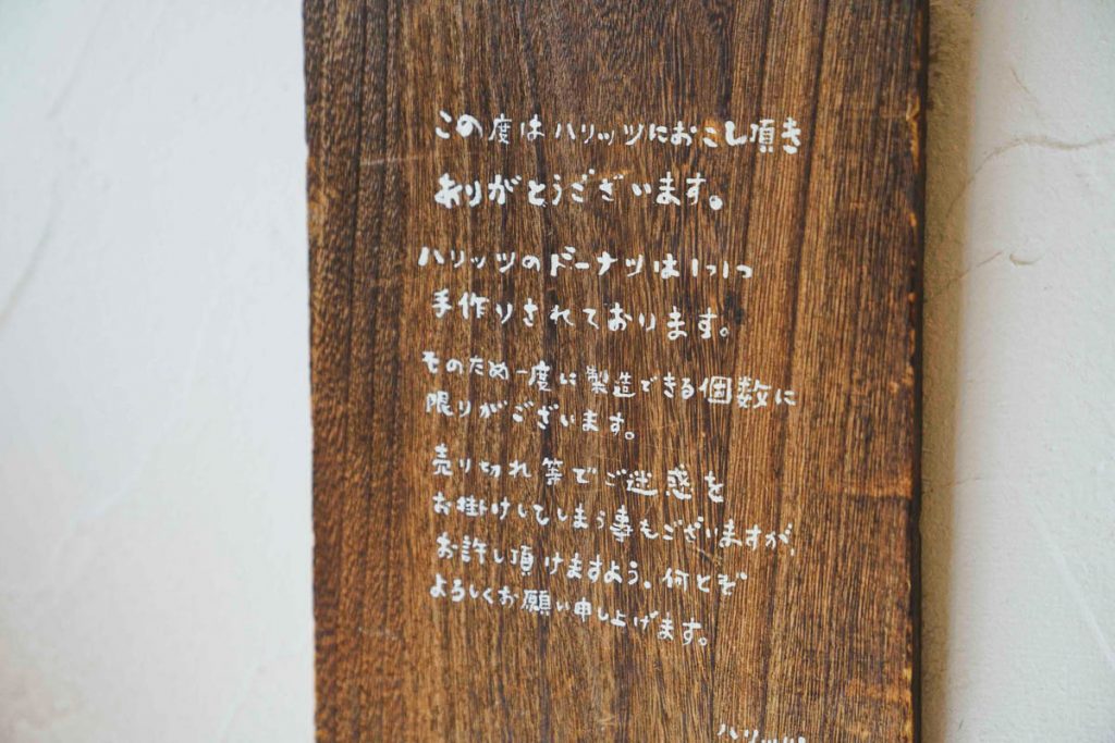 一口食べたら心が安らいでほっとするような、シンプルでやさしい味わいのハリッツのドーナツはこの場所で作られて、この場所で販売されている。初めて店を訪れた時は“これがドーナツ屋さん?”と驚きを覚えるはず。でも、お店のドーナツを一口食べたらきっと納得。懐かしくも新しい、シンプルだけど奥深いハリッツのドーナツととてもよくマッチしていて、それが店舗内外にも充ちていることに気付かされる。また、周りにはお店やオフィスも多く、この街で働く人々のランチ需要があるため、手作りパンのサンドイッチも販売。人気店ゆえ、遠くから足を運ぶお客さんも多く行列も日常茶飯事。だけど、代々木上原の街で生活する人たちの心も大切にしている。