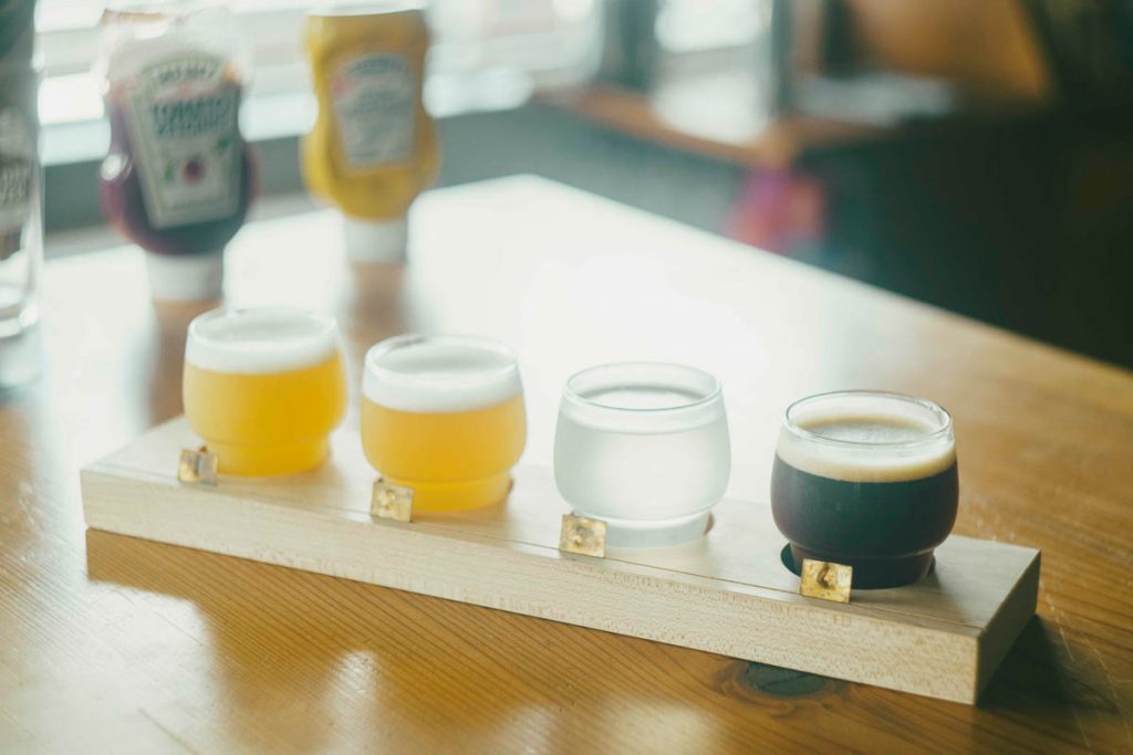 個性豊かなクラフトビールを色々味わってみたい人は、4種の飲み比べセットがおすすめ。気になる銘柄を4つ選んでオーダーすることができる。お気に入りを見つけて。