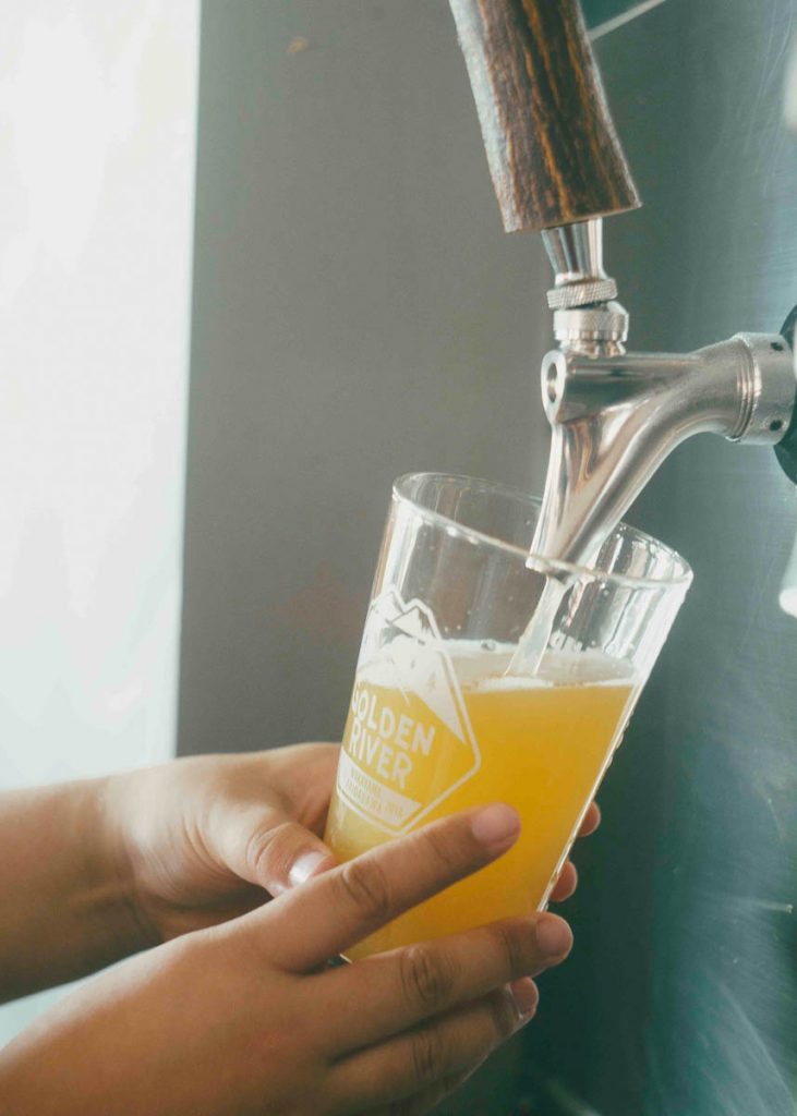 ゴールデンリバーでは、レギュラー2種と変わり種4種、常時6種類のクラフトビールを提供している。扱うクラフトビールは、隣接するビール醸造所「NOMCRAFT(ノムクラフト)」のクラフトビールを主軸にしながら、各地のクラフトボールもその時々で展開。
