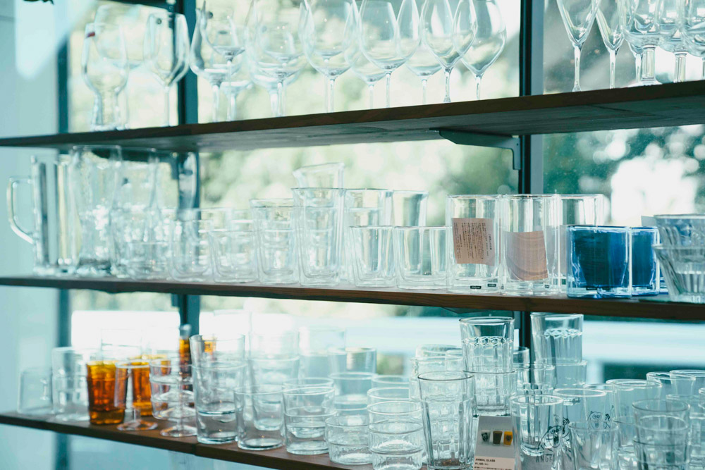 器類もとっても豊富。エントランスを入ってすぐのゾーンには、お皿、グラス、調理器具など、キッチン周りのアイテムがずらり。