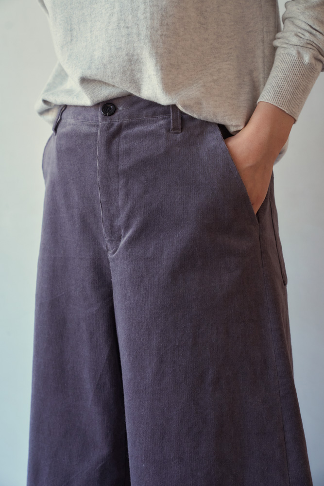 ストレッチの効いたキュロットパンツは、ジャンセンで毎回人気のアイテム。新作は、秋冬らしい細コーデュロイ生地で登場。製品に洗い加工を施すことで、より柔らかな風合いに仕上がり、肌あたりも履き心地も◎。足元には、ロングブーツを合わせた着こなしも今季らしくておすすめです。