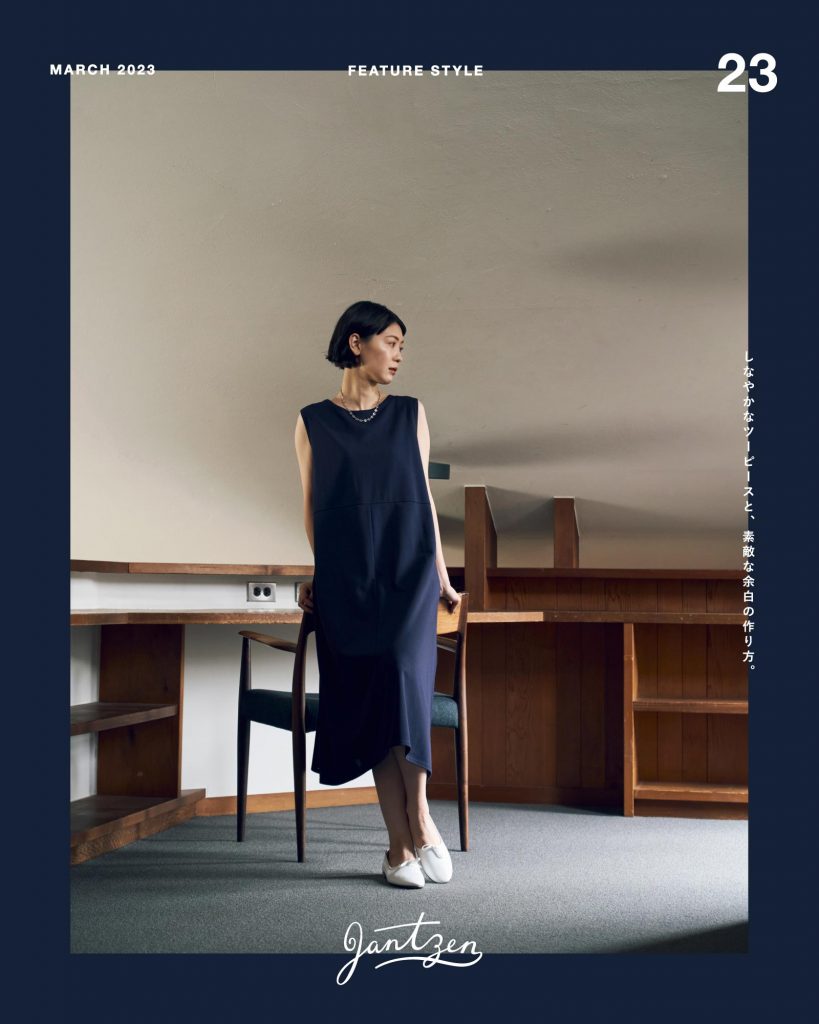 ジャンセン(JANTZEN)の新作から、プレス一押しのアイテムをコーディネートで紹介していく連載「FEATURE STYLE 新しい私に出会える、ワードローブ」。Vol.23では、セミオケージョンにもおすすめのきれいめツーピースをピックアップ。春から初秋にかけて3WAYで楽しめる、長袖プルオーバーとノースリーブワンピースのアンサンブルです。