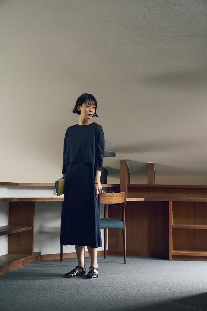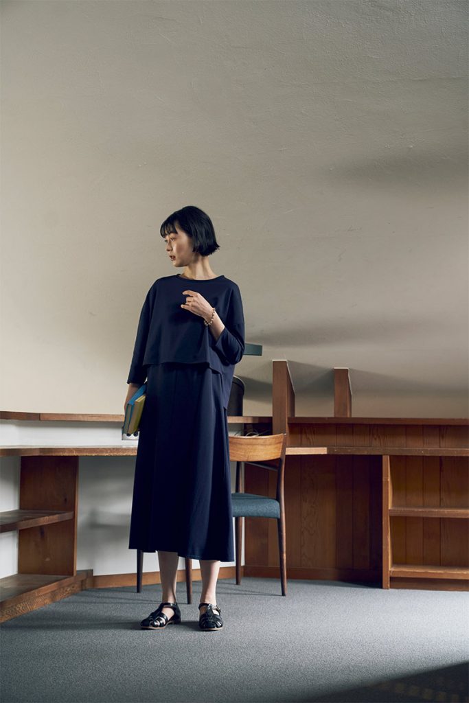 「ポンチ ツーピース」は、ワンピースとトップスのセットアイテム。アンサンブルのコーディネートだけでなく、各アイテム単品使いでも活躍。組み合わせによってさまざまなシーンで着られるポテンシャルの高い服は、大人のワードローブにおさえておきたい服のひとつ。日常でもちょっとしたお呼ばれの席でも旅先でも、気の利いた装いを相棒に。