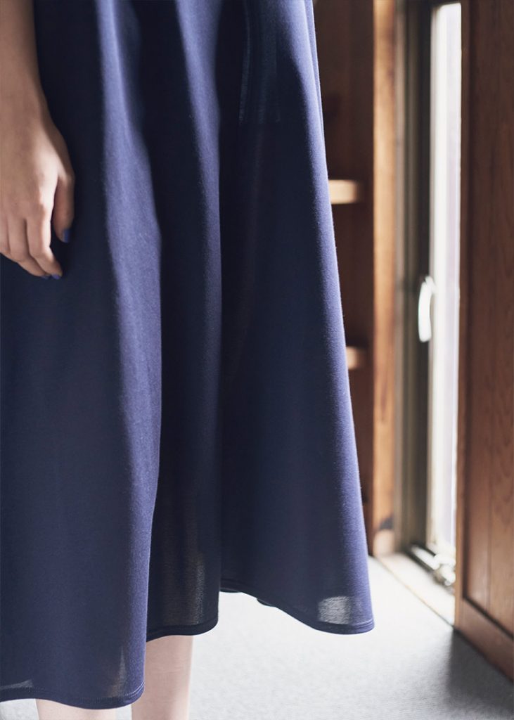 ワンピースの裾は程よく透け感があって軽やかな印象。
