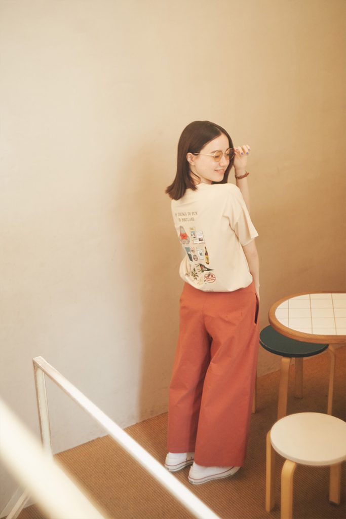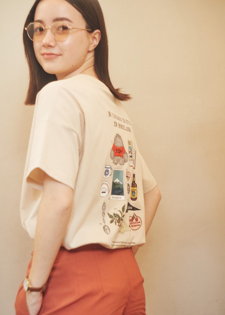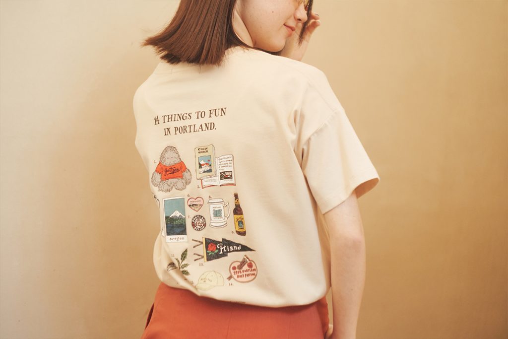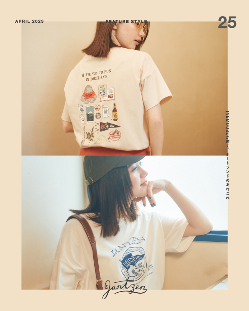 ジャンセン(JANTZEN)の新作から、プレス一押しのアイテムをコーディネートで紹介していく連載「FEATURE STYLE 新しい私に出会える、ワードローブ」。Vol.25では、人気イラストレーター・INEMOUSEさんとのコラボレーションTシャツをピックアップ。ポートランドにまつわるモチーフをデザインした、まるで現地のスーベニア(お土産)のような趣のあるアイテムです。