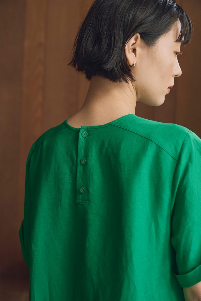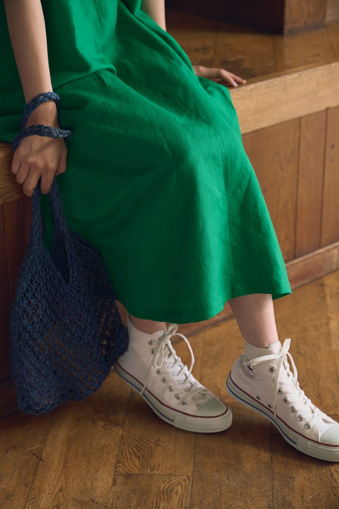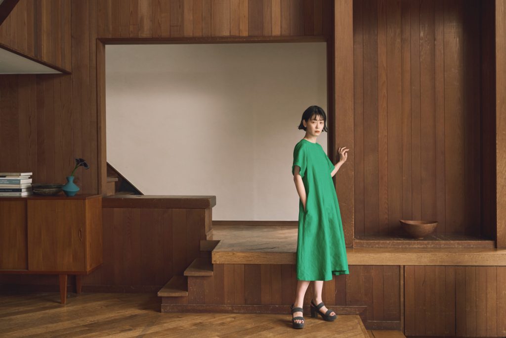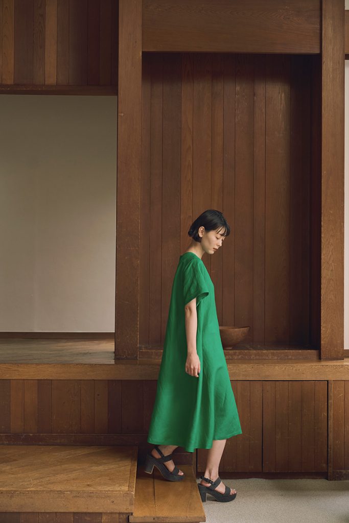 夏に向けて用意しておきたいのは、一枚でコーディネートが決まるワンピース。洒落感があることはもちろんだけど、着心地の良さも重視したい……そんな願いを叶えてくれるのがこちらの「リネンワンピース」。ドラマティックなグリーンのカラーは、生地の質感も相まってよりシックな印象に映る。パキッとした色味ながら奥行きと落ち着きを感じられるから、普段カラーアイテムを選ばない人も今夏はぜひ手に取ってみて欲しい。