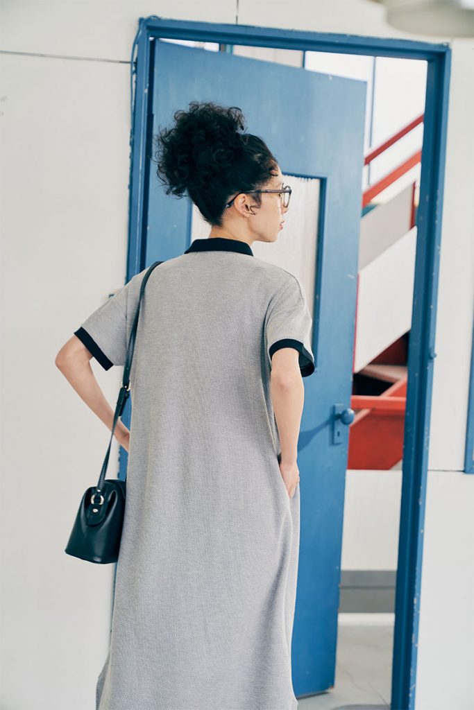 さっと着替えて出かけたい夏場のちょっとした外出から、バカンス・旅先での服としても選びたいシンプルシックなバイカラーの「ポロワンピース」。グレーを基調にポイントカラーのブラックがきいていて、アクセなしでも着こなしが締まるグッドルッキングな1着です。透け感がないのでインナー選びに困ることもなく、肌あたりが良いところも嬉しい。