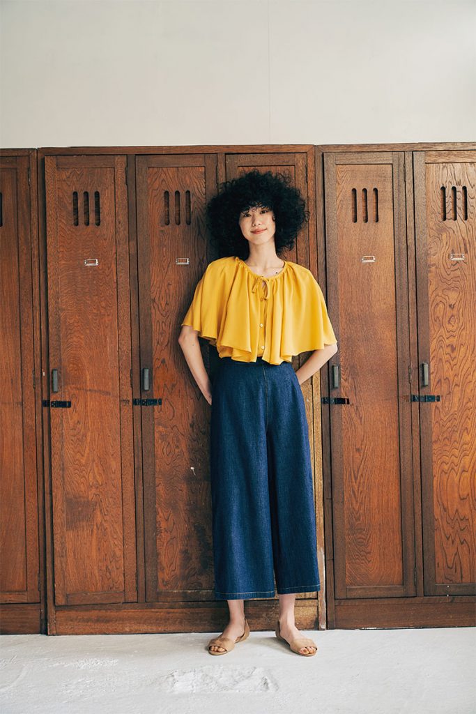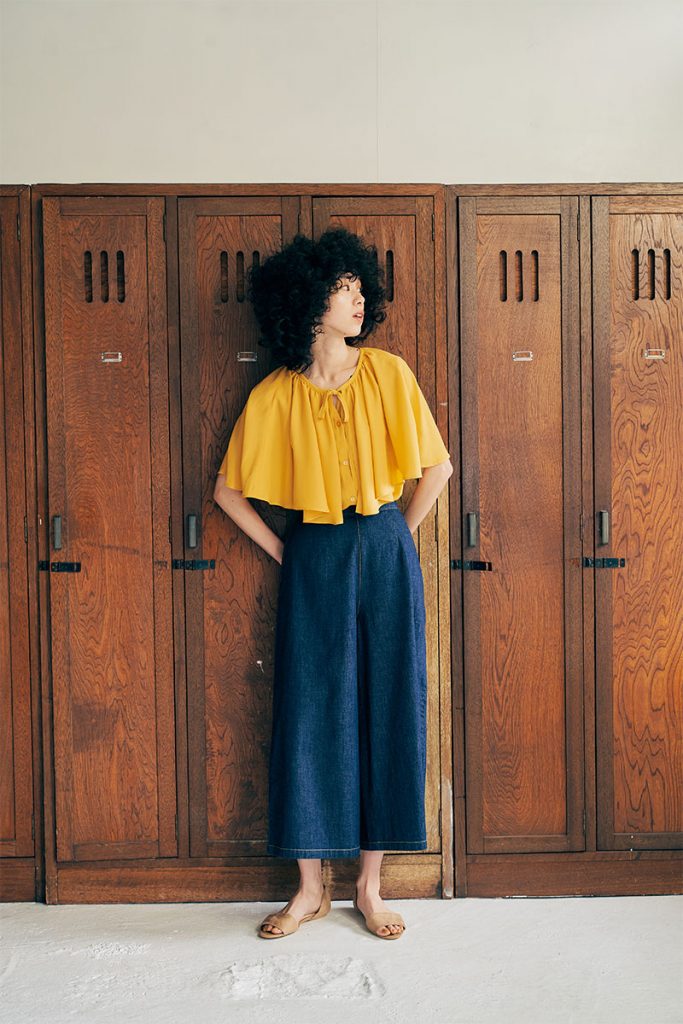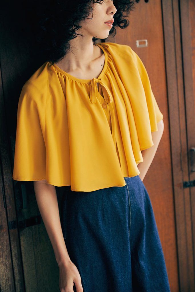 まさにそんな気分の今にぴったりな新作がこちらの「ジョーゼットケープブラウス」。ひまわりの花びらを思わせるイエローと、ひらひらっとしたケープカラーがサマーシーズンの着こなしを華やかに彩る一着。合わせるボトムは、すとんとしたシルエットのパンツが好相性。ジャンセンの一押しは、デニムガウチョとのワンツースタイルです。