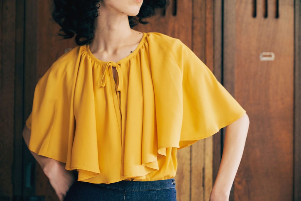 ジャンセン(JANTZEN)の新作から、プレス一押しのアイテムをコーディネートで紹介していく連載「FEATURE STYLE」。Vol.31では、フェミニンなケープ襟のブラウスをピックアップ。ひまわりのような鮮やかイエローを主役にしたハッピーでフレッシュな夏コーデを楽しんでみては?