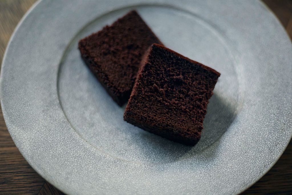 日本古来の美意識をモダンにアレンジし、現代の暮らしを彩るお菓子を提案する〈HIGASHIYA(ヒガシヤ)〉。季節商品も多い同店の商品で定番として愛されているお菓子の1つにカステラがある。香り高く上質なカカオペーストを使用し、丹念に焼き上げた〈HIGASHIYA(ヒガシヤ)〉特製のカカオカステラ。しっとりふっくらとした生地感で、口に含むとカカオの豊かな味わいと濃厚なコク、ほのかな甘みが口の中に広がる。