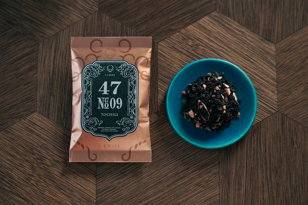 和紅茶に苺とミントを合わせた「No.47-09 栃木県 和紅茶ブレンド」。栃木県大田原市の雲巌寺でつくられた和紅茶と、栃木名産の「とちおとめ」を使用して仕立てられている。日本だけでなく西洋、東洋のティーカルチャーも取り入れながら作られる〈SABOE(茶方薈)〉のお茶は、8つのシリーズで展開されており、それぞれのテーマがある。このお茶は、47都道府県より個性豊かな茶を取りそろえる“SABOE 47”のラインナップの1つで、栃木県のお茶として提案されている。