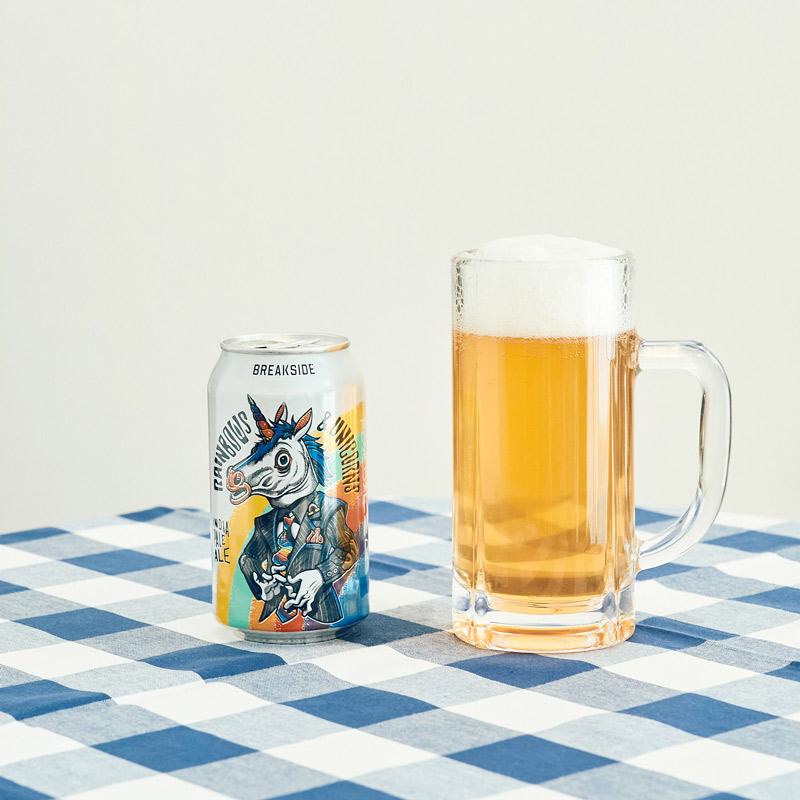 ネーミングがそのままパッケージデザインに反映されているところもユニーク。ポートランドの醸造所〈Breakside Brewery(ブレークサイドブルワリー)〉の「Rainbow & Unicorns(レインボーアンドユニコーン)」は、ピーチやアプリコットとパイナップルのフレーバーも感じる、ジューシーでトロピカルなセッションIPA。特に濃い味の料理との相性が良い。ちなみに“IPA”はホップの苦味が強く、泡が立ちやすいのが特徴。