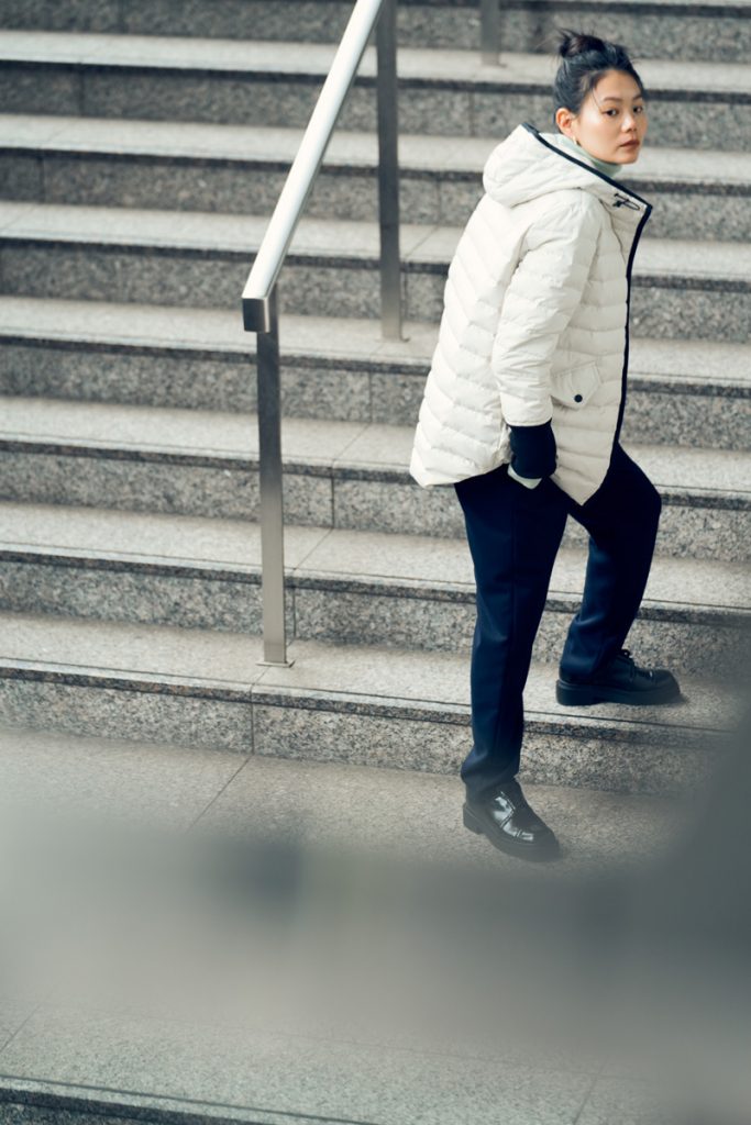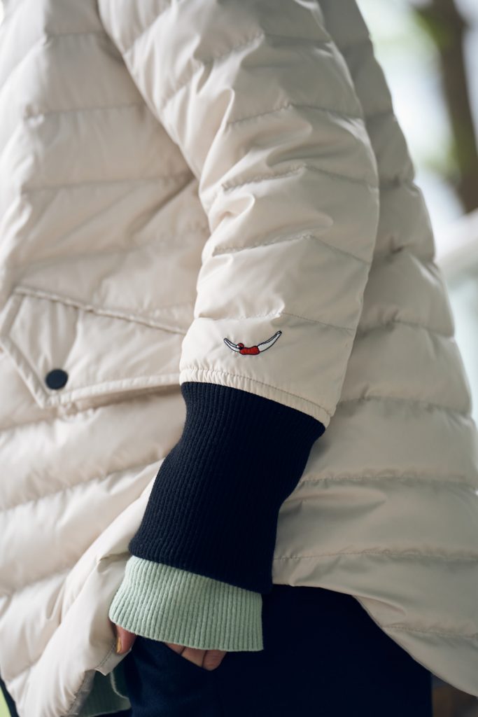 防寒重視で選ぶことの多いダウンジャケットですが、オシャレに着られたらもっと嬉しい。なので、ジャンセンでは、袖口のリブの長さやポケットのフラップの形、ラウンドに仕上げた裾のラインなど、細部のあしらいにこだわって、着用したとき、きれいに見えるフォルムをデザインしました。