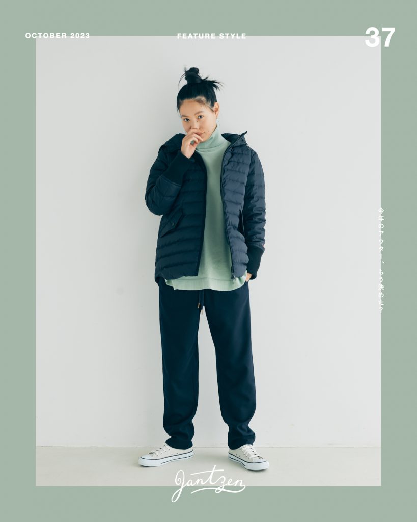 ジャンセン(JANTZEN)の新作から、プレス一押しのアイテムをコーディネートで紹介していく連載「FEATURE STYLE」。Vol.37では、1着持っておきたい冬アウターとして、ダウンジャケットをピックアップ。肌あたりの良いタートルニットとパンツに合わせたカジュアルな着こなしとともにご紹介します。