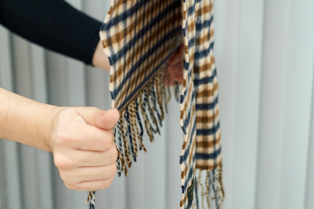 3.首に直に巻くマフラーは、意外と汚れていたりするもの。だけど、セーターやコートよりクリーニングすることへの意識が低いかも…? 皮脂汚れや化粧汚れがついていて、知らぬ間に落ちないシミになっていた…なんてことになる前に、キレイに洗濯してより心地よく愛用したい。