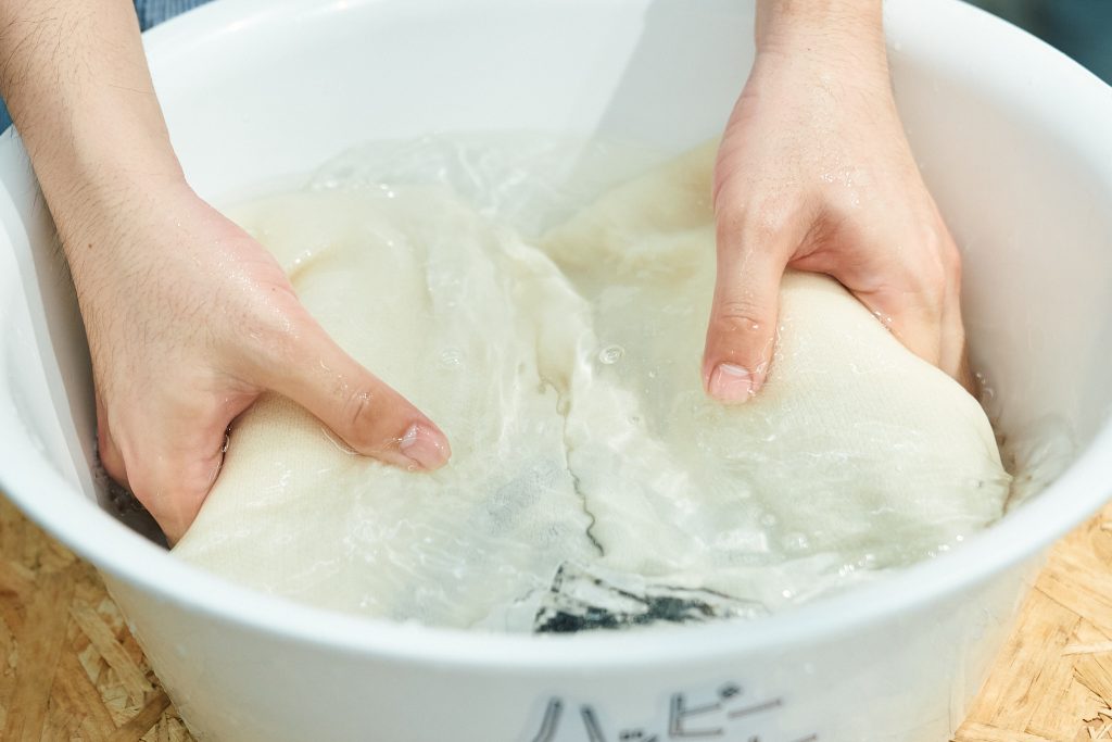8.上下面を入れ替えて、もう一度押し洗いしながらすすぎます。すすぎ時間は、トータル1分くらい。