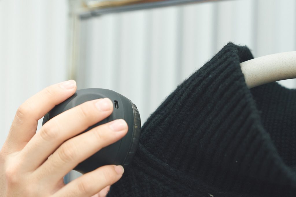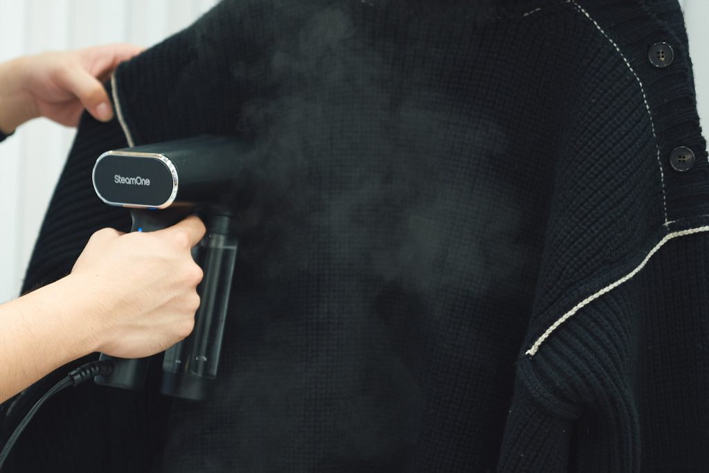 「服の形を整える役割もありますが、衣類についた気になるニオイもスチームをあてることでとれるはず。モヘア等、毛足の長いデザインのニットは、スチームで1度毛足を逆立ててから、改めてブラシで毛並みを整えるのもおすすめですよ」