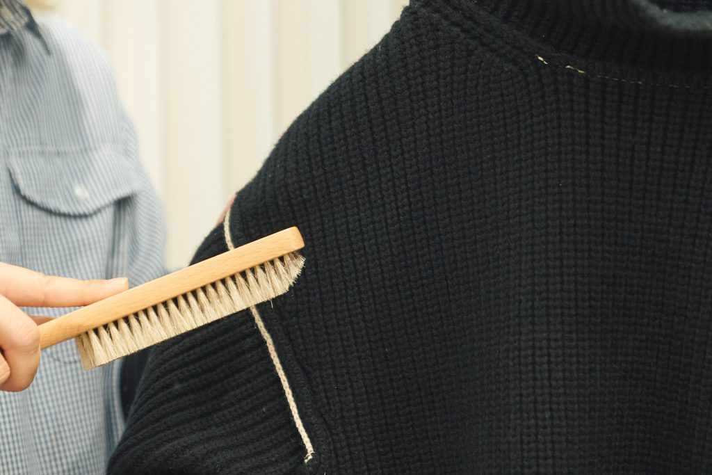 「ニットのセーターやウールのコートについた大抵のホコリやケダマは、ブラッシングをすることで取れます。服をよく見て、地の目にそって毛並みをそろえるイメージでブラシをかけてみましょう」(リブレ三宿店 綿田さん、以下同)