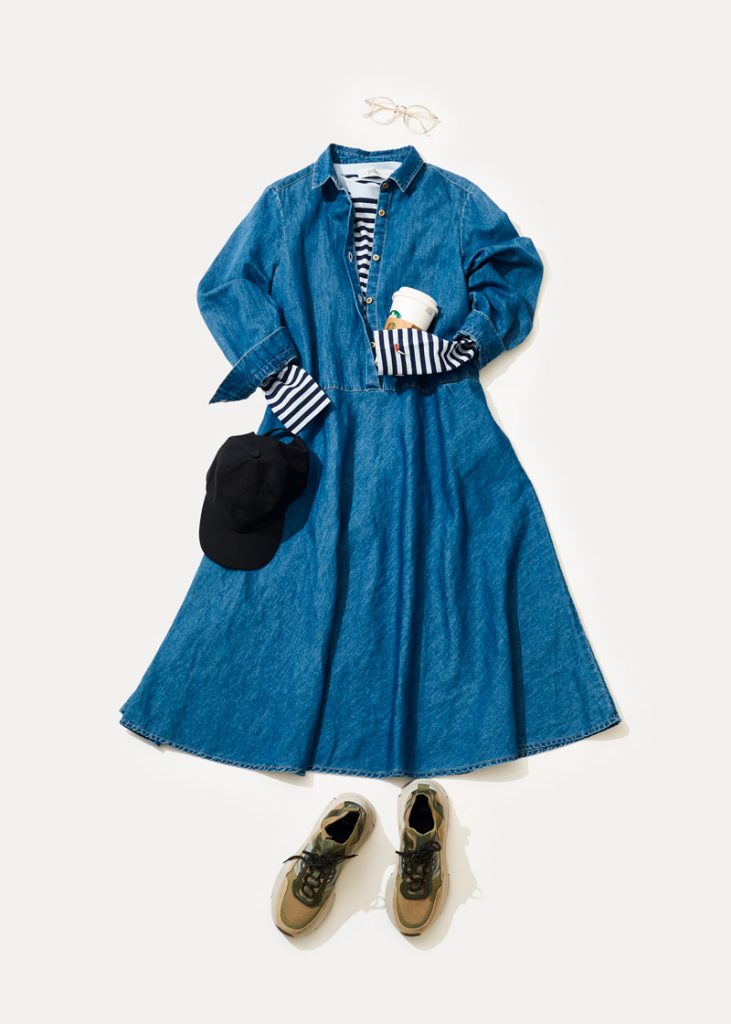 1枚でも重ね着でも楽しみたいデニムのワンピース