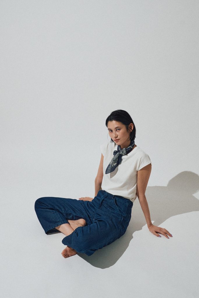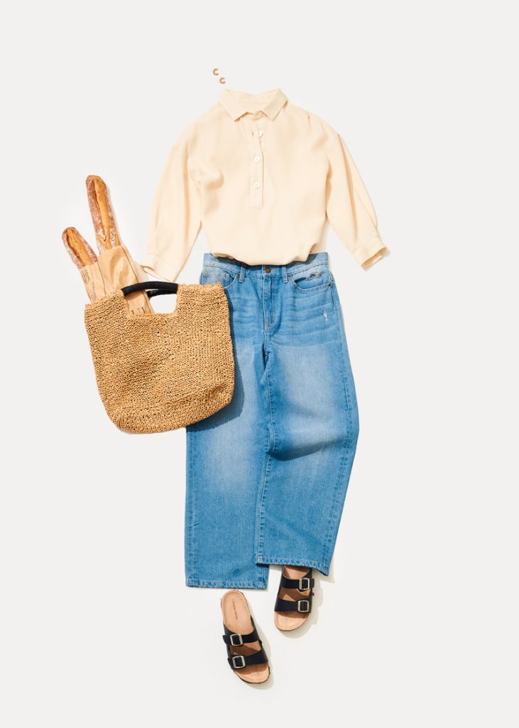 フレンチTシャツ¥3300、コットンリネンデニムペインターパンツ(カラー:75ネイビー)¥8800/ジャンセン その他 参考商品およびスタイリスト私物 *記載の価格は税込