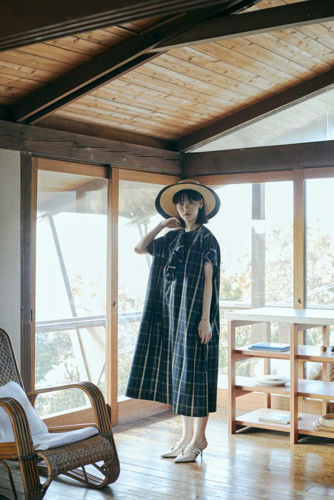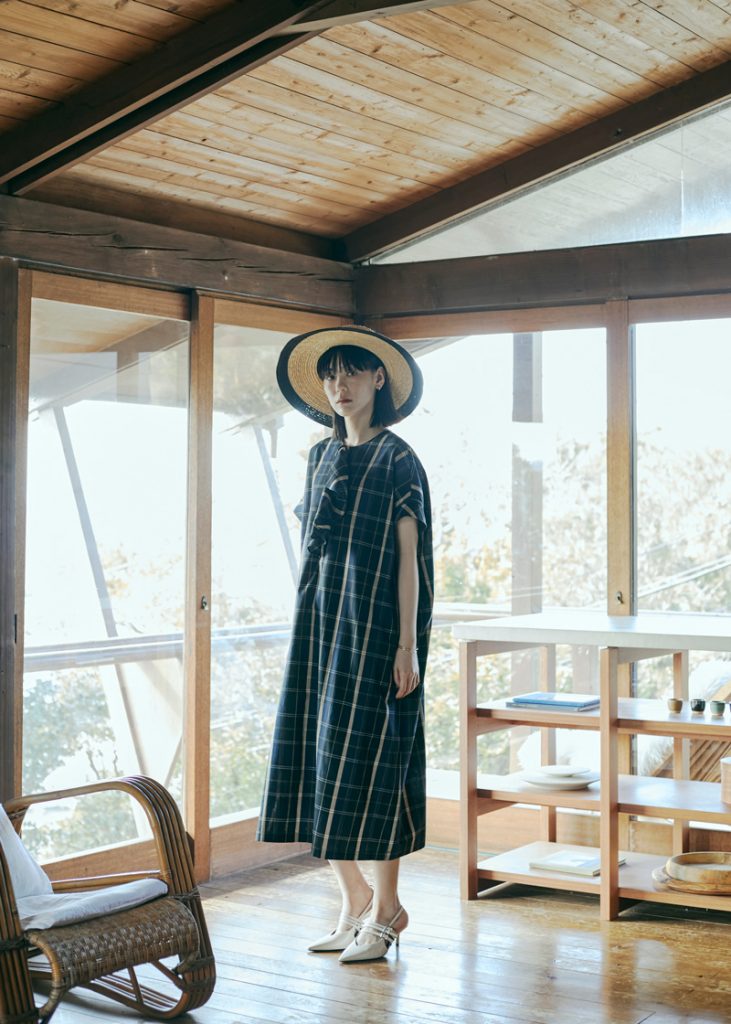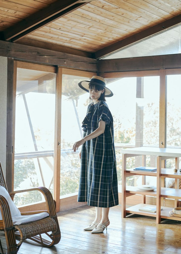 Vol.53では、クラシカルなムードのチェック柄ワンピースをピックアップ。同柄のフリルのディテールが着こなしに華を添え、カジュアルだけどラフすぎない、大人の普段着に嬉しい気の利いた1着です。