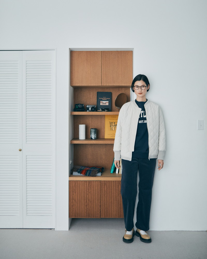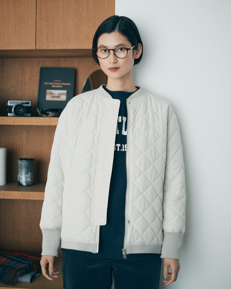 1.着膨れしにくい、ライトなキルティング。また、袖口のリブは長めに、襟元と裾のリブは短めにすることで、カジュアルながらも女性らしく着られるようなディテールのデザインにもこだわりました。