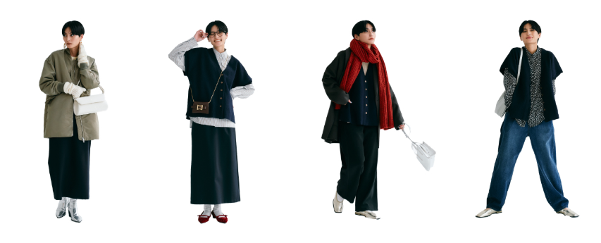 今買って、春も着られる「ベストとスカート」。合わせやすくて、コーディネート次第で何通りも楽しめる万能な2アイテムを冬→春の7スタイルで着回し。それぞれ単体での活用はもちろん、セットアップ風に着るのもおすすめ。