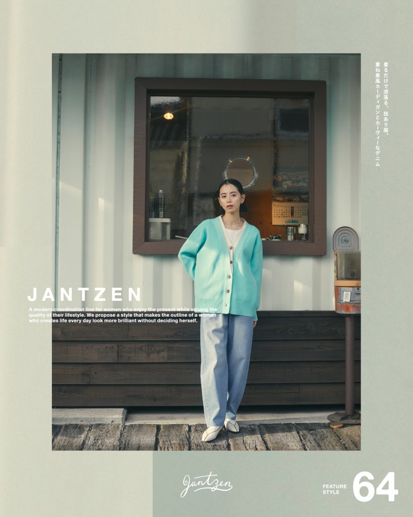 重ね着風の前立てが特徴の「カーディガン」とカーヴィーシルエットの「デニムパンツ」は、1点投入でもコーディネートが見違える新作。どちらも合わせやすいのに着るだけで大人っぽく洒落るベーシック+αのデザインで、JANTZENならではのこだわりを落とし込んだ技あり服。配色やシルエットをポイントにした着こなしで軽やかな春の装いを完成させて。