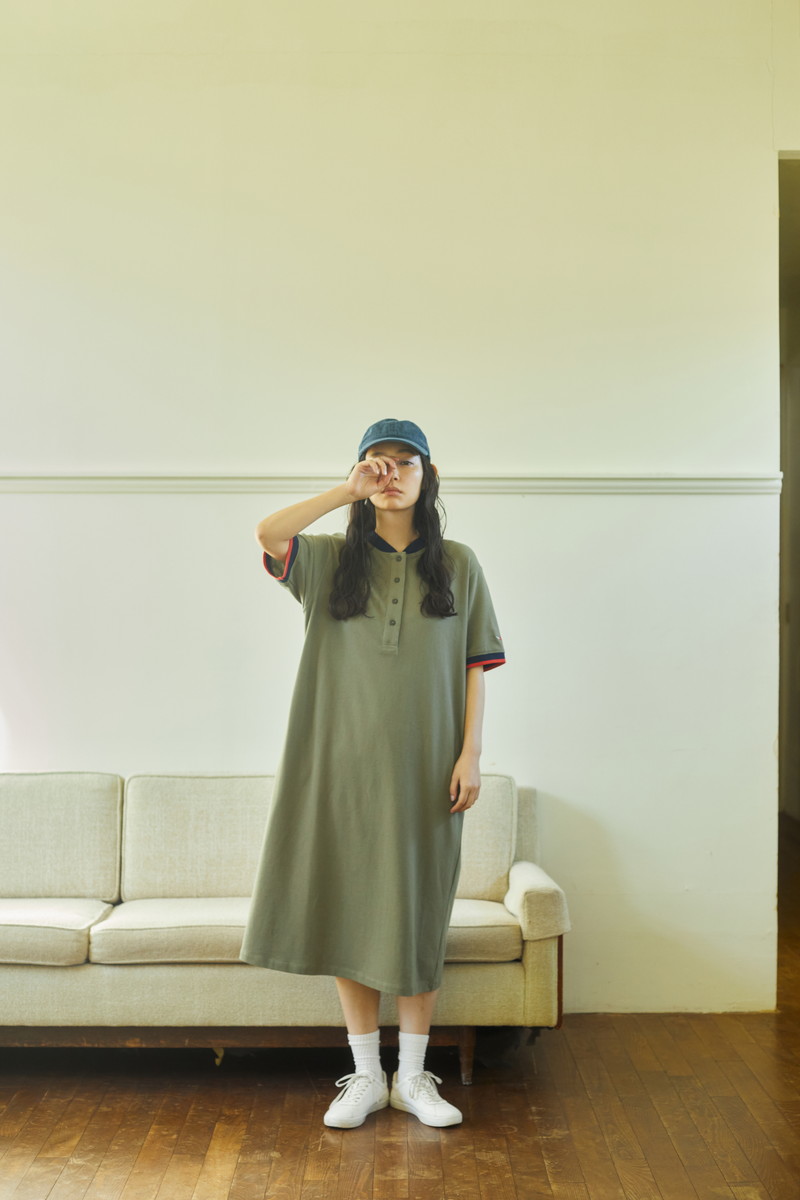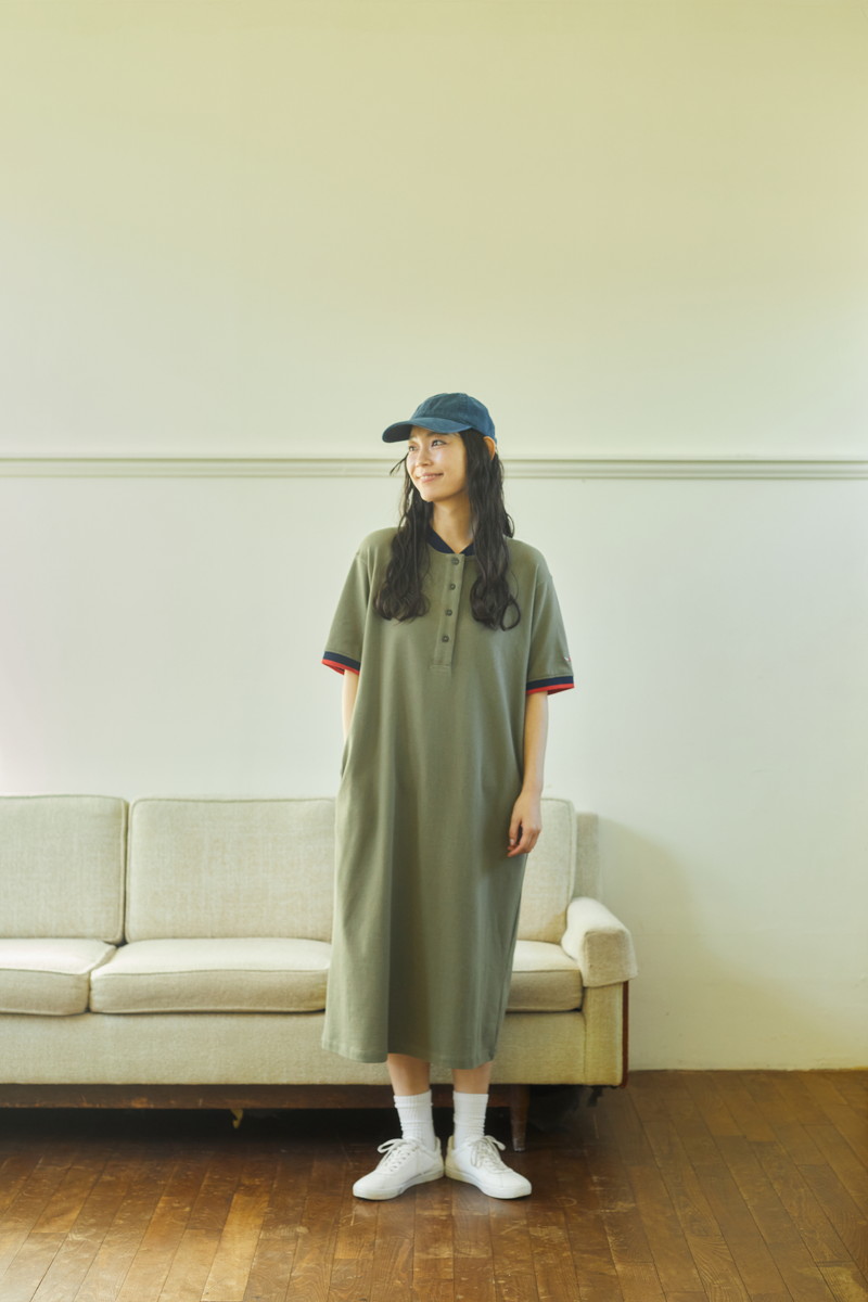 1枚でコーディネートが決まるポロシャツワンピースは、襟と袖口の配色がポイント。こなれ感のある大人スポーティなデザインに仕上げました。生地は再生ポリエステルを使用したカノコ素材を採用。吸水速乾機能もあり、暑い時期にも涼しく着用できます。両サイドに便利なスリットポケット付き。同素材のポロシャツも展開。