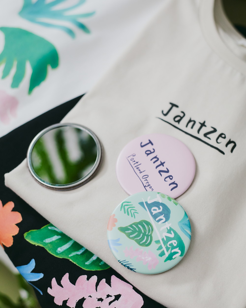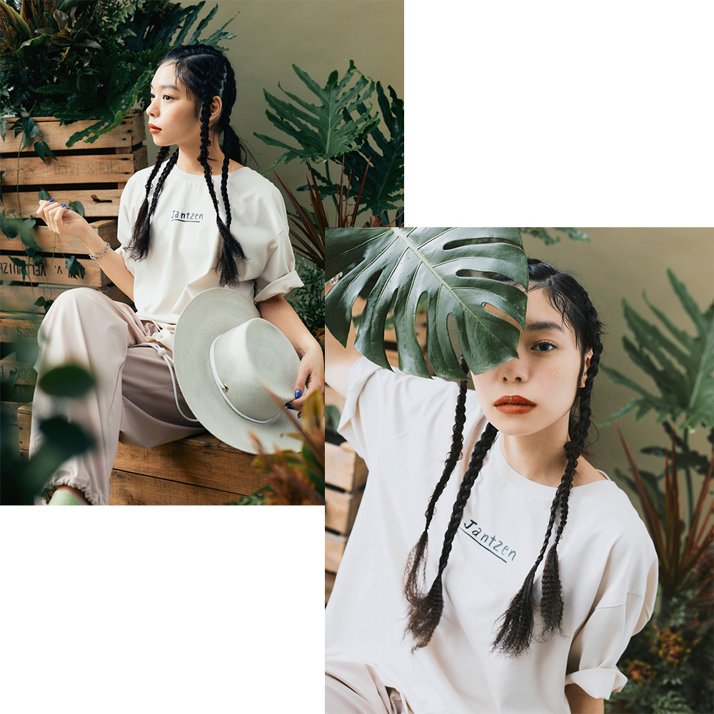 リングで、大人な抜け感のあるプリントTシャツに仕上がりました。網中さんによるフロントの「JANTZEN」ロゴもポイントです。カラフルなボタニカルモチーフの色を拾って、ボトムやシューズにカラーアイテムを取り入れるコーディネートもおすすめ。