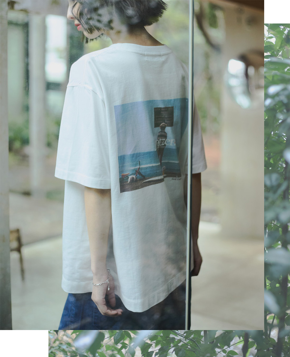 フィルム写真ならではの味のある質感、色味が何気ない着こなしに奥行きを演出。オーガニックコットンのボディで肌あたりの良さも◎。【フォトプリントTEE(ノースショア)】では、お馴染みのダイビングガールロゴにサングラスをかけて夏らしいアレンジを加えたところもポイントです」デザイナー・奥野