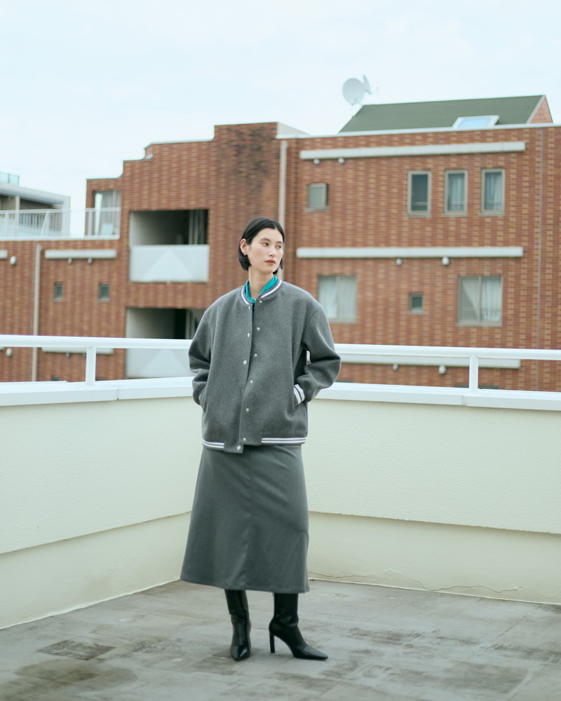 スタジアムジャンパー¥19800 、ストレッチ ボックススカート¥9900