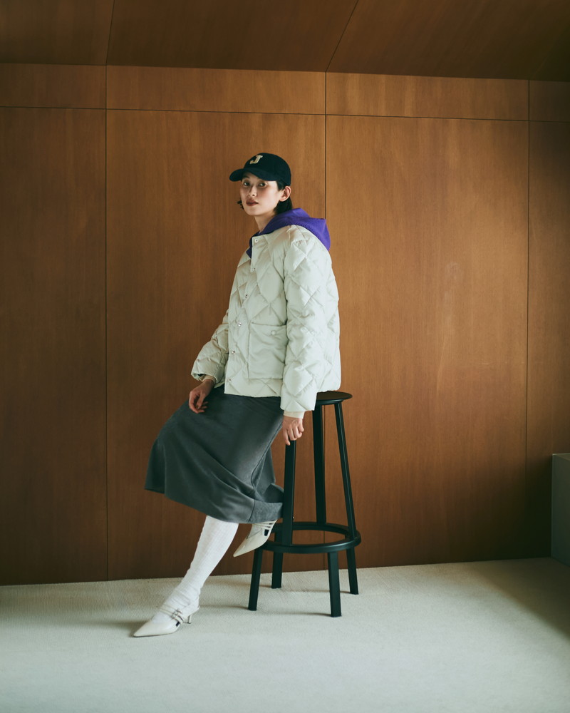 キャップ¥5500、軽量ダウンジャケット¥26400、スカート¥11000