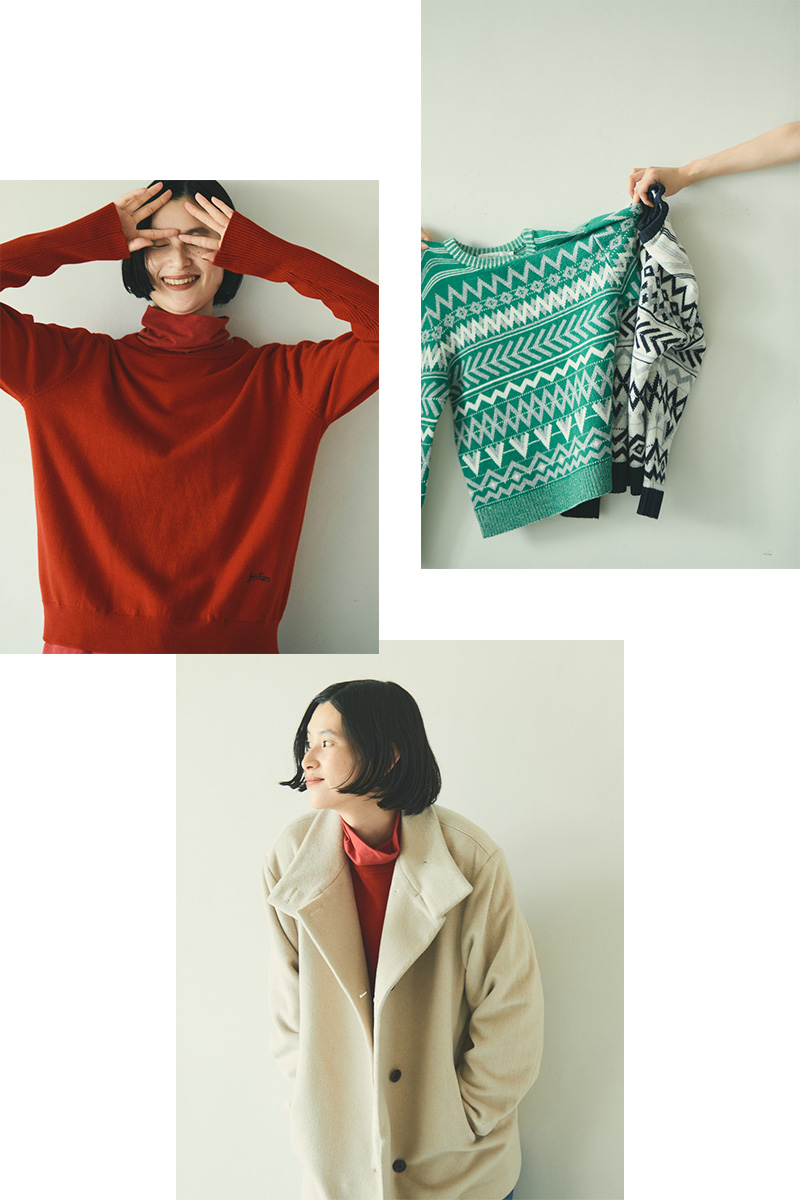 ブランドとして定評のある気の利いたカジュアルはもちろん、今季はエレガントな趣きのあるツイードのアイテムも一押し。ラメ糸やスパンコール糸といった意匠糸を贅沢に使ったツイード生地で仕立てたジャケットとジャンパースカートは、セットアップでのコーディネートも素敵です。このほかに、どこかカレッジ感のあるオーセンティックなスタジアムジャンパーやロゴをデザインしたジャカードニットなどを大人っぽくアレンジしたブランドらしいアイテムもお目見え。