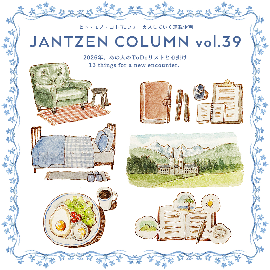 ジャンセン(JANTZEN)の理念や考えに基づき、そこから派生したライフスタイルに纏わる“ヒト・モノ・コト”にフォーカスしていく連載企画「JANTZEN COLUMN」。 今回は、2024年に続く第2弾となる、2026年の“あの人のToDoリストと心掛け”をジャンセンの制作や企画に携わるスタッフやゆかりのあるクリエイターたちにインタビュー。この1年の間に取り組みたいことや暮らしの基本にしたいことを教えてもらいました。全13項目、日常の中に新しい発見が見つかるようなグッドシングスをご紹介します。