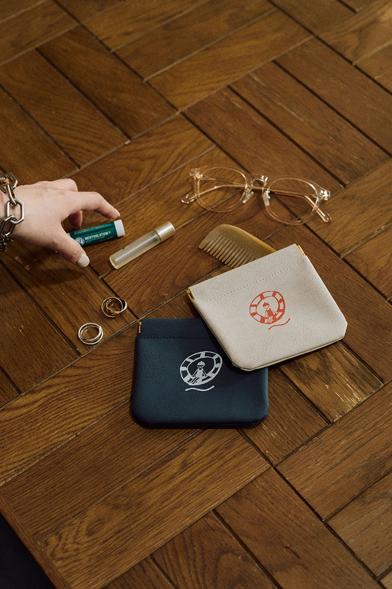 スペシャルコレクションの発売とともにノベルティフェアを開催。いずれかのコラボレーションTシャツを含み10,000 円(税込)以上ご購入のかたに先着で、今回コラボレーションしたイラストレーターのkilldiscoさんのイラストをデザインした限定ポーチ(全2色、いずれか1点)をプレゼント。バックの中身までお洒落にコーディネートしたくなるようなミニポーチ。アウターのポケットやミニバッグにも入れやすいコンパクトなサイズ感なので、日々のお出かけに役立てて。